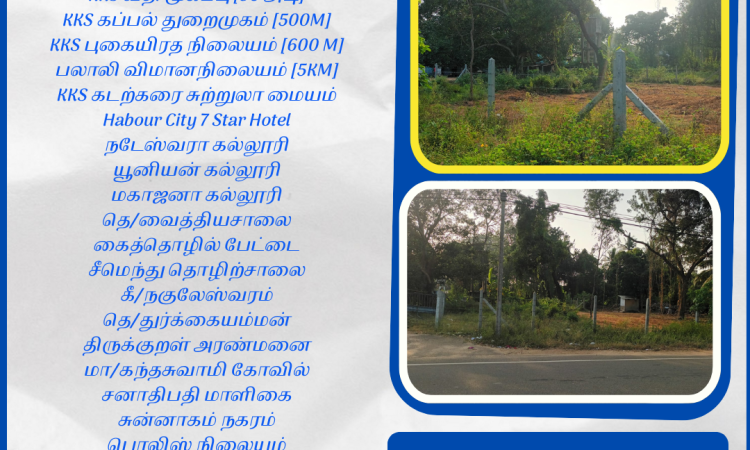 யாழ்ப்பாணத்தின் புதிய நகரமாக அமையவுள்ள காங்கேசன்துறை யில்(KKS) காணி விற்பனைக்கு உண்டு.