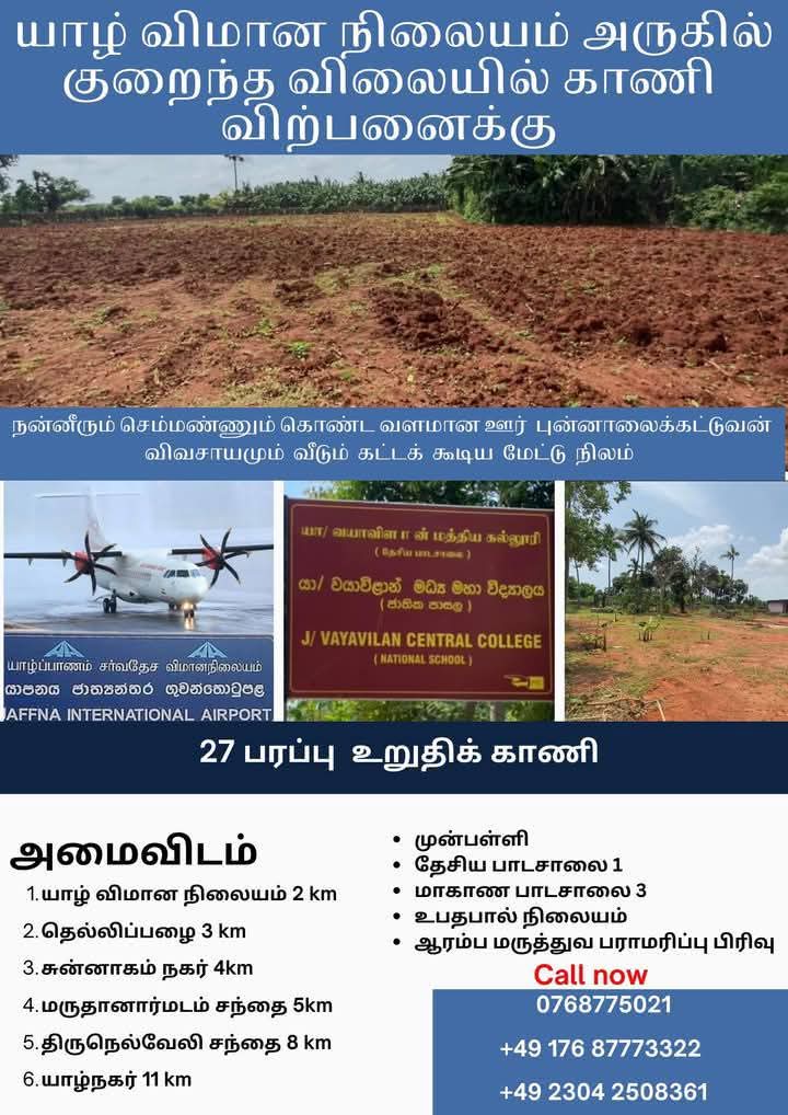 யாழ்ப்பாணம் புன்னாலைக்கட்டுவனில் காணி விற்பனைக்கு